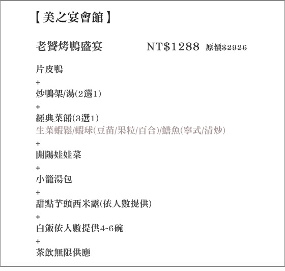 聚餐時刻又到了, 17Life-吃喝玩樂團購3折起,又讓愛聚餐的我們買不停吃不停,價格超殺,如果點進去已經售完別捶心肝喔!限時限量的團購券先搶先贏喔! 士林區中華美饌精華大匯集!獨具道地特色,主廚精湛烹調細緻風味,包含一鴨兩吃的大滿足饗宴,演繹中式好味道