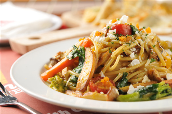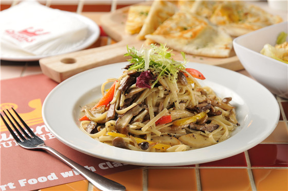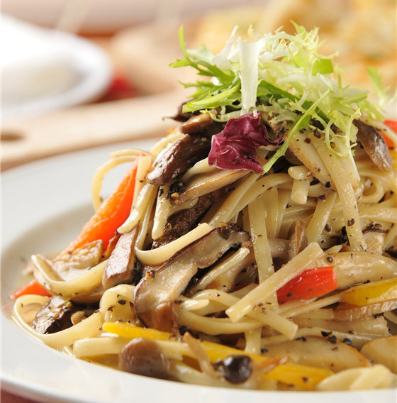 綜合野菇拌炒義大利麵,加入大量松露醬及鮮奶油增添豐富口感及營養價值,最後再淋上松露橄欄油提升香氣,色香味俱全。
