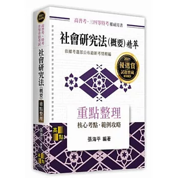 本書完整收錄近20年高普考、地方政府特考、身心障礙特考、原住民特考、退役特考、升等考試、社工師考試等國家考試之社會研究法相關試題,內容完整涵蓋「社會研究法」、「社會研究方法」、「社會工作研究方法」、「社會調查與研究」等名稱相異、內容雷同之試題,堪為坊間唯一收錄試題適用對象最完整之考試用書。其篇幅精巧,難易適中,極適合國考的考生研習、鑑往知來。