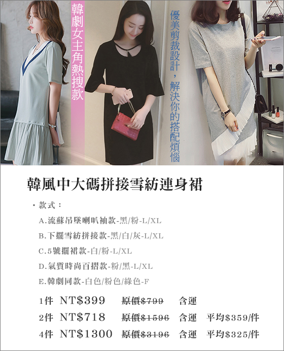 .....韓風中大碼拼接雪紡連身裙哪裡買最便宜.心得文.試用文.分享文